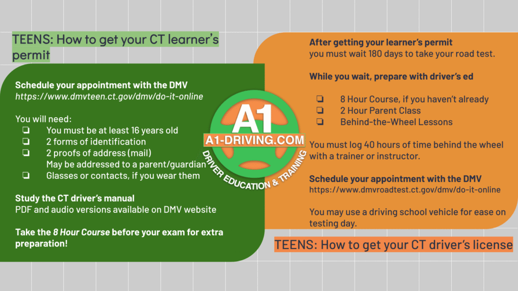 A1-Driving School is the preferred driving school for students and families in Bridgeport/Stratford, Connecticut. Our teen’s driver education courses cover all the information you need to earn your license and become a safe and secure driver, including driving for teens in Bridgeport, Stratford, and Waterbury.